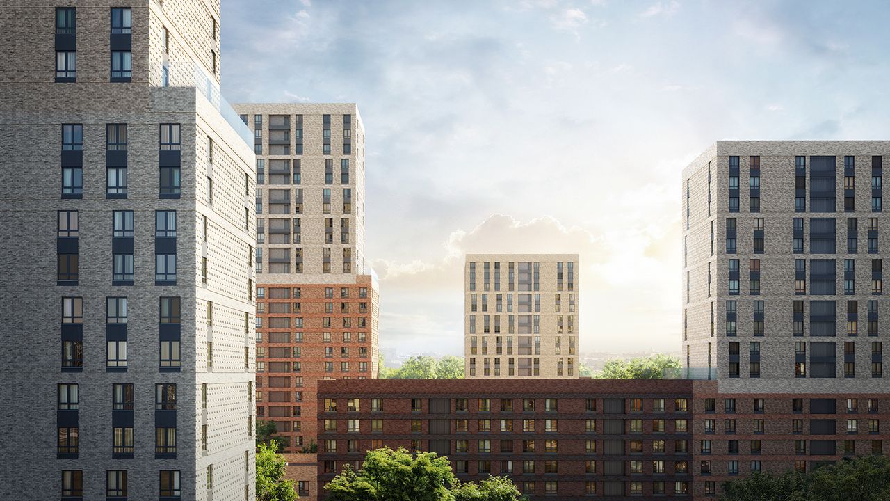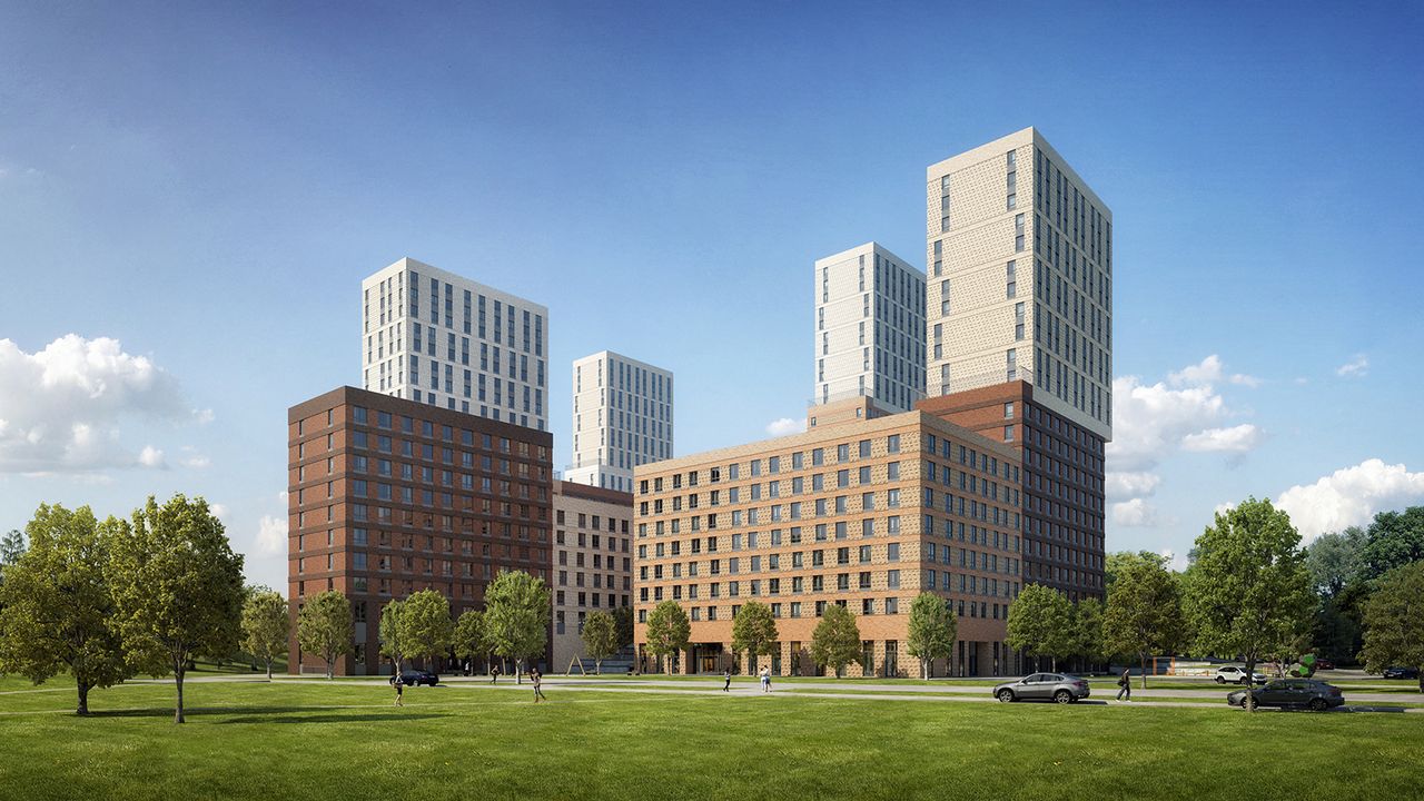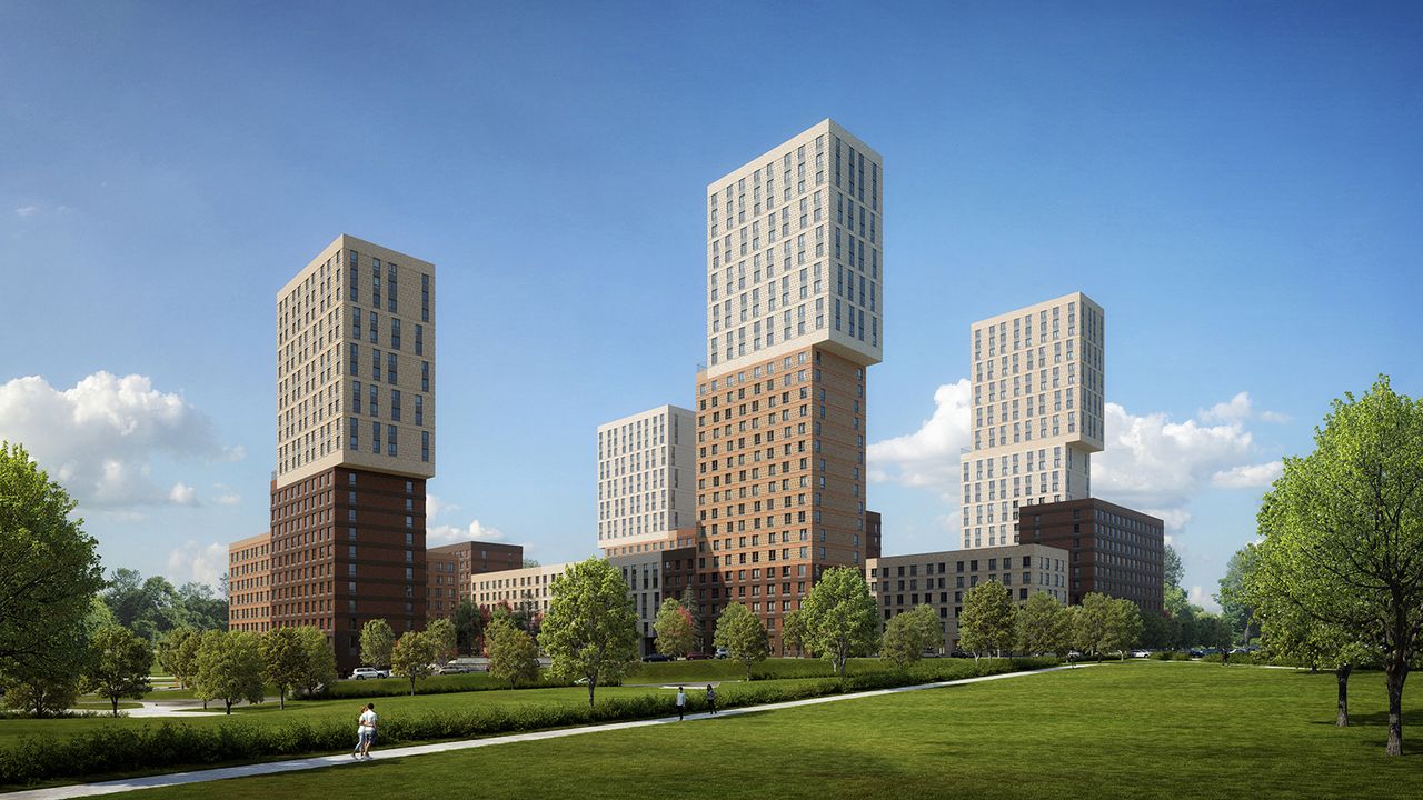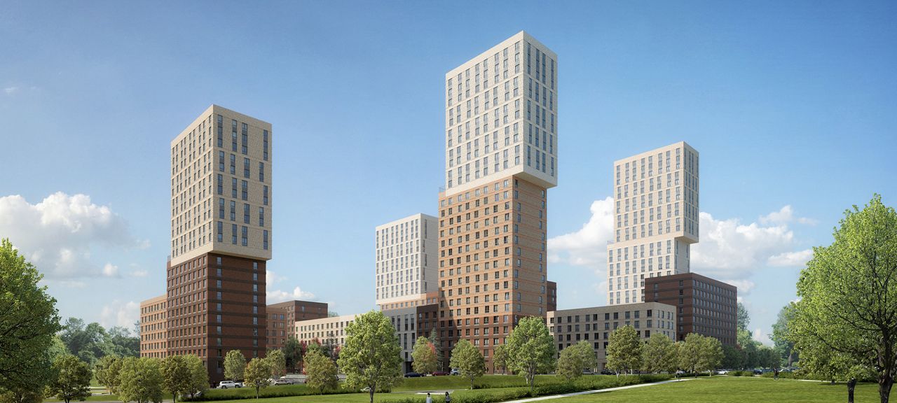 Четыре монолитных дома с переменной этажностью секций войдут в состав комплекса. Высотой от 6 до 28 этажей. Входные группы расположены на уровне земли, без лестниц и пандусов. В каждом подъезде установлено по два скоростных современных лифта: грузоподъемный и пассажирский, на них можно спуститься и на подземный паркинг. Есть место для консьержа и помещения с ограниченным доступом для хранения колясок и велосипедов. Также на подземных этажах расположены индивидуальные кладовые комнаты с высокими потолками, для возможности размещения так стеллажных систем хранения. Внешняя отделка фасадов дома является важной частью при выборе жилья, чтобы не нарушать единство фасадов, застройщик оборудует специальные места до установки кондиционеров на переходных балконах, а для отвода конденсата предусмотрены специальные дренажные каналы.