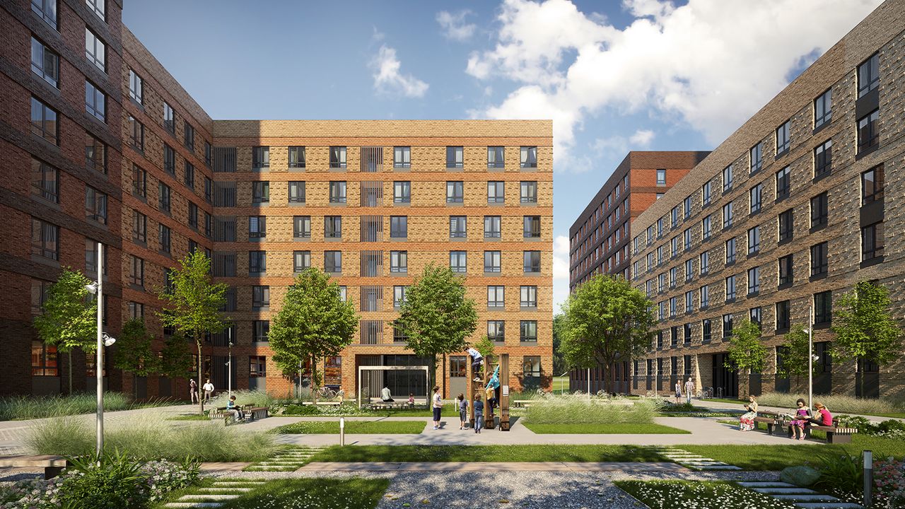 Закрытые дворы, сюда не могут проехать автомобили. В таком дворе можно безопасно гулять с детьми и отпускать их одних с полной уверенностью, что с ними все будет в порядке. Территория больше напоминает зеленый парк для прогулок и отдыха. Для детей будут оборудованы игровые площадки, выполненные из натуральных материалов, а также спортивные площадки. Будут организованы места для настольных игр.Футбольные и баскетбольные площадки расположили за периметром дворов, чтобы не нарушать спокойствие жителей.